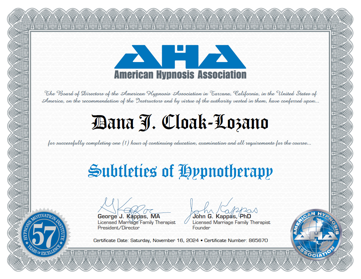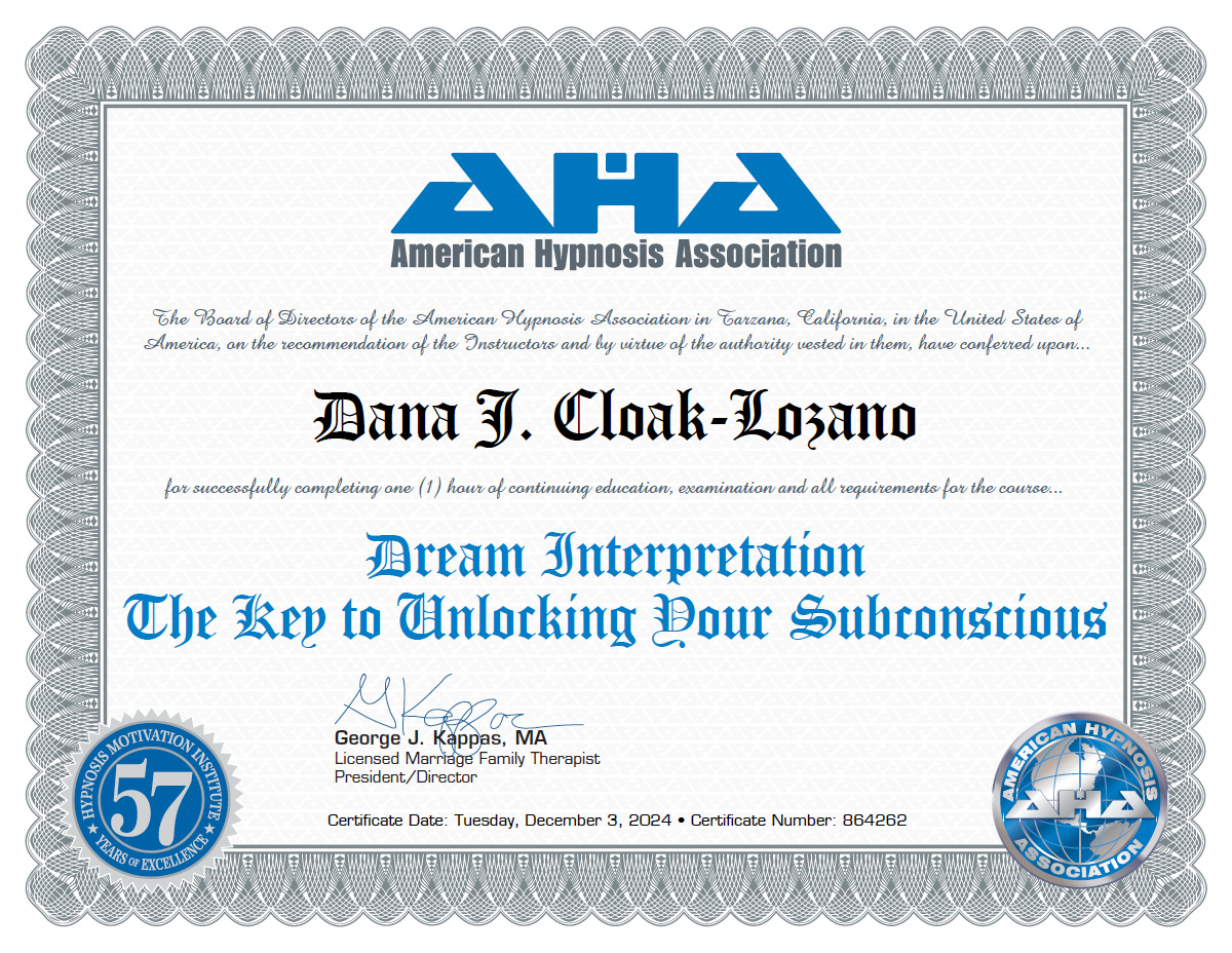 For those skeptical about hypnosis, Dana offers a simple truth: trance is something we all enter daily. Whether while driving or getting lost in a film, we slip into it without effort. Her calm explanations and relatable examples dissolve doubt, allowing clients to experience hypnosis as a familiar state of focus and inner calm. From there, the work speaks for itself.