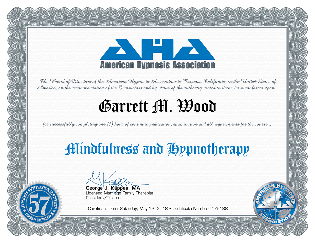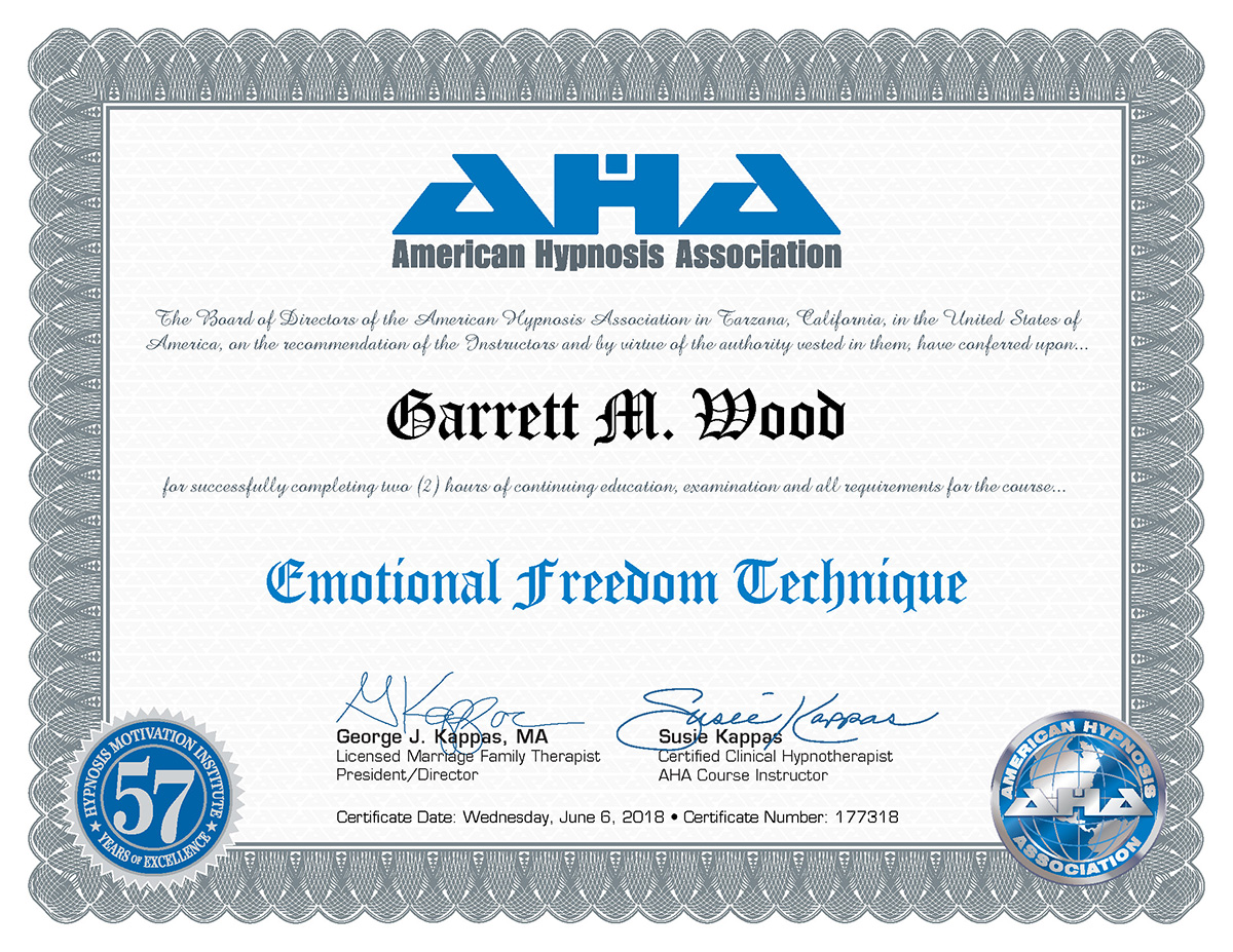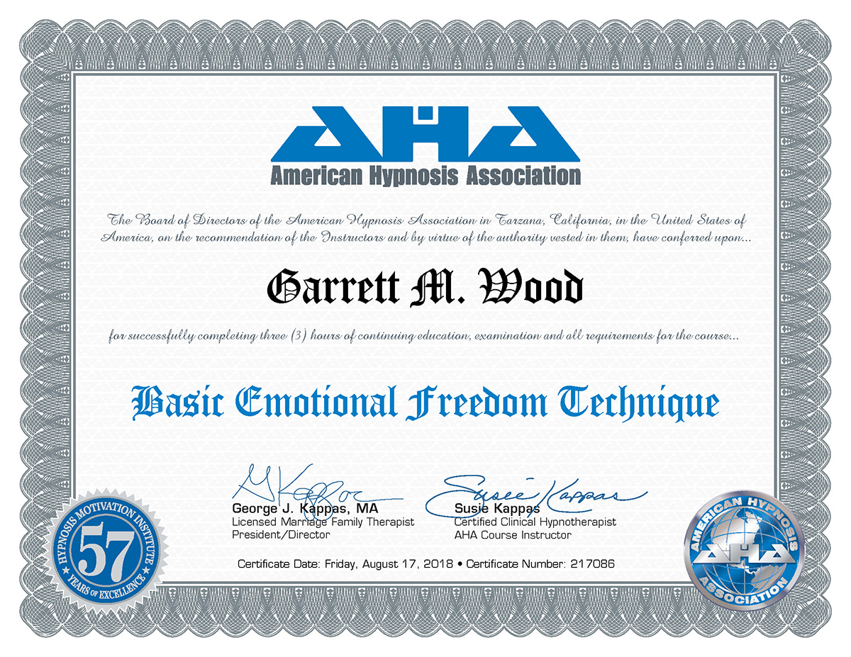 Garrett’s approach is integrative, strategic, and profoundly human. He blends Ericksonian hypnosis with modern evidence-based tools—memory reconsolidation, CBT, ACT, mindfulness, somatics, biofeedback principles, parts work, appreciative inquiry, and motivational interviewing—to create sessions that feel both deeply therapeutic and immediately applicable to real life.