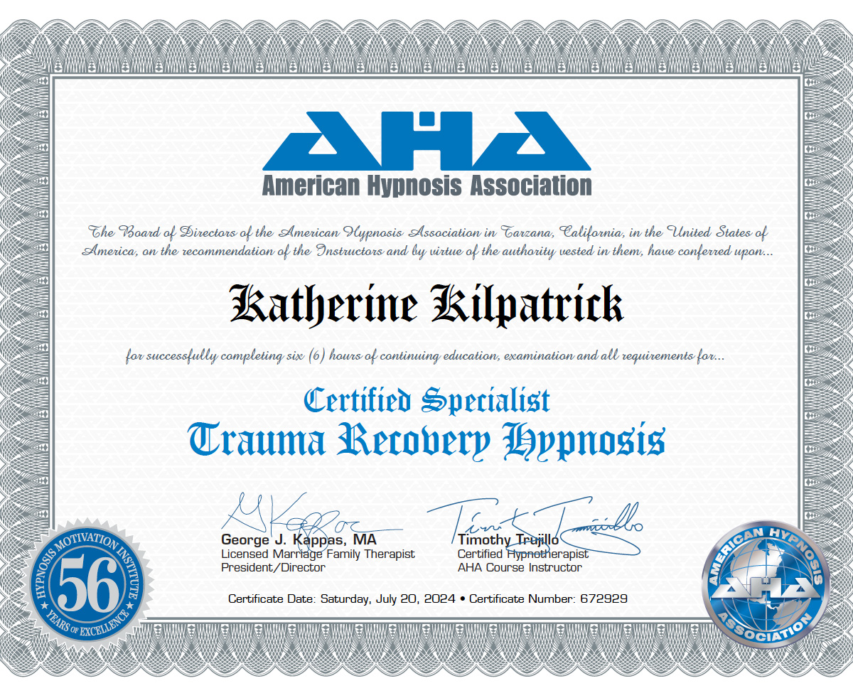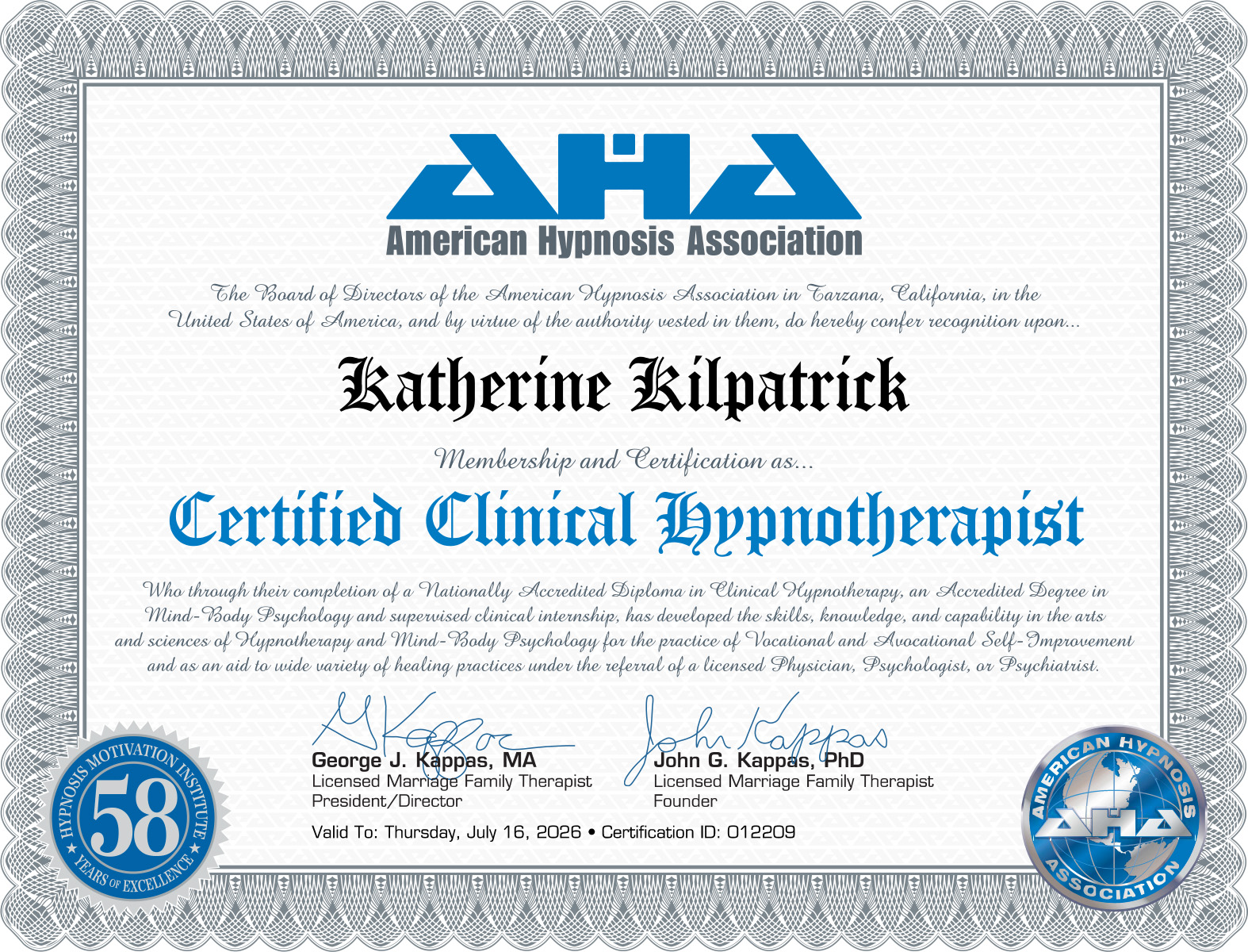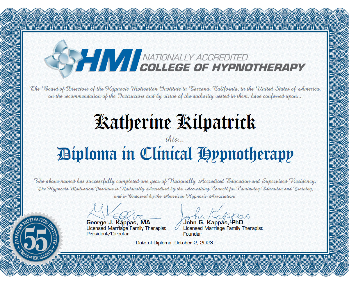 Since then, I have continued my own therapeutic work to build confidence, manage the stress of co-parenting, and create a new professional path. I returned to school again—this time to become a hypnotherapist—so I could guide others through similar transformations.
