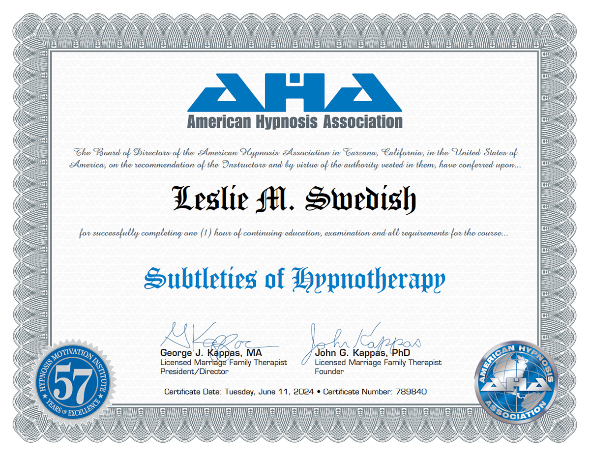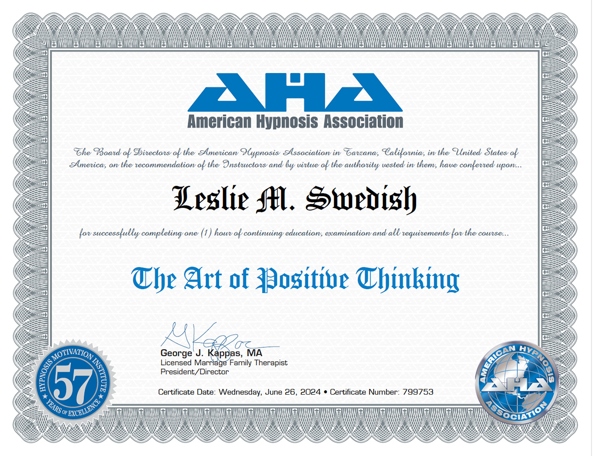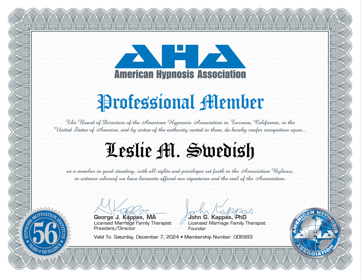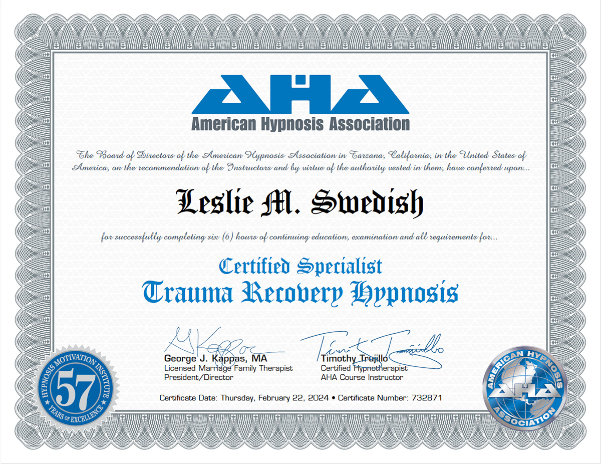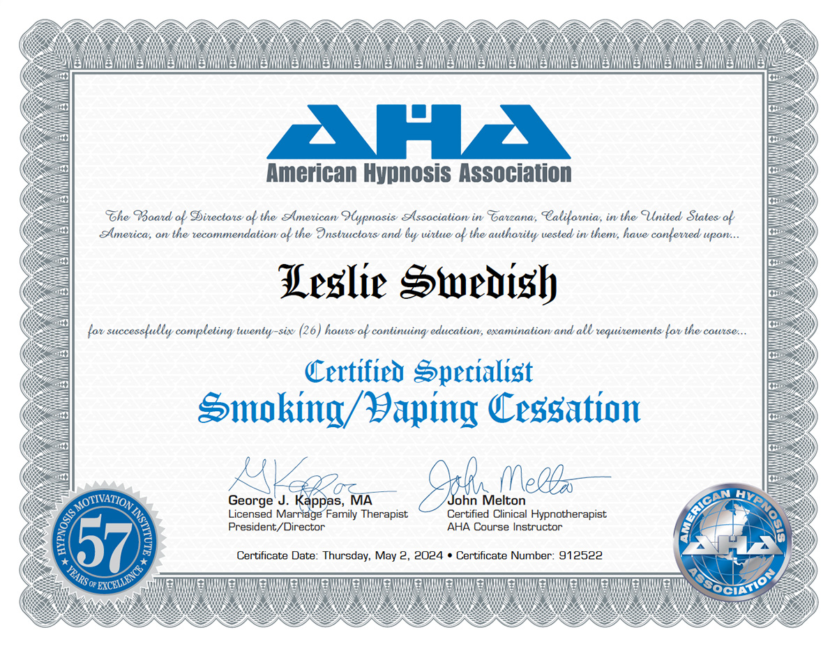 Leslie specializes in helping clients heal from toxic relationships, overcome insomnia, resolve childhood trauma, and build confidence and motivation. She also supports those ready to quit smoking or vaping—empowering them to replace destructive habits with inner calm and self-mastery. Drawing from her certifications in NLP, Parts Work (IFS), Reiki, Chakra Healing, and intuitive modalities like Tarot and Oracle cards, Leslie blends structure and intuition seamlessly. Her background working with both analytical and spiritually inclined individuals allows her to meet clients exactly where they are—whether they approach hypnotherapy through science, spirituality, or simple curiosity.