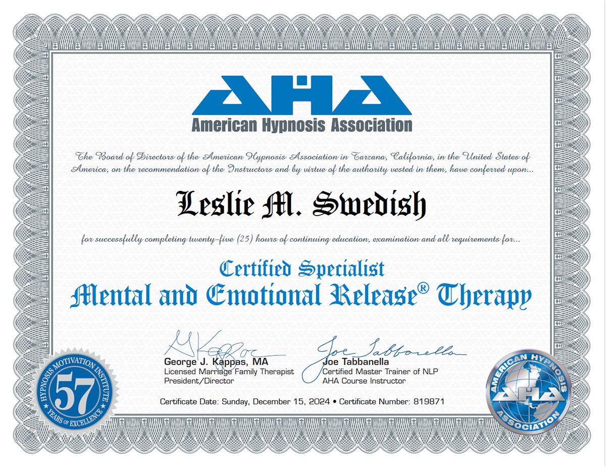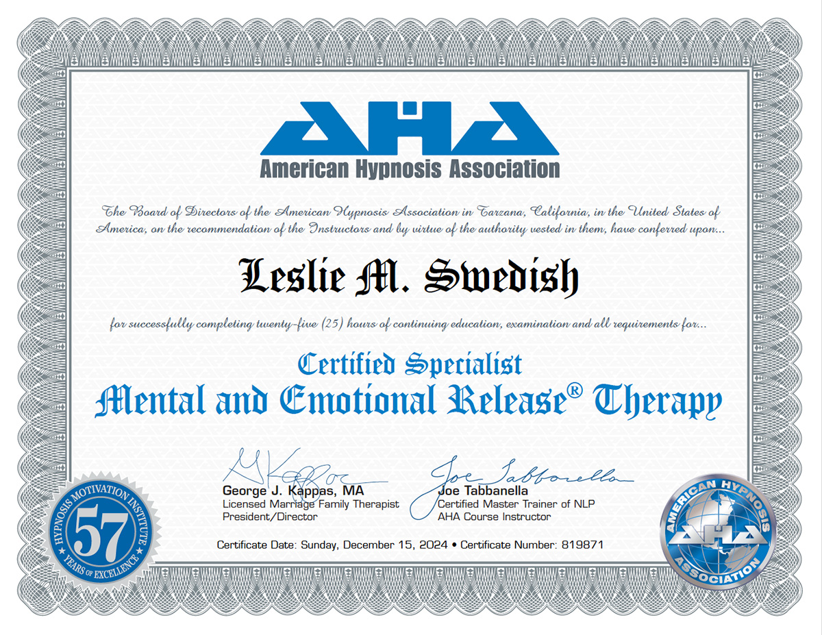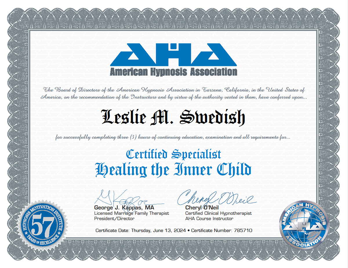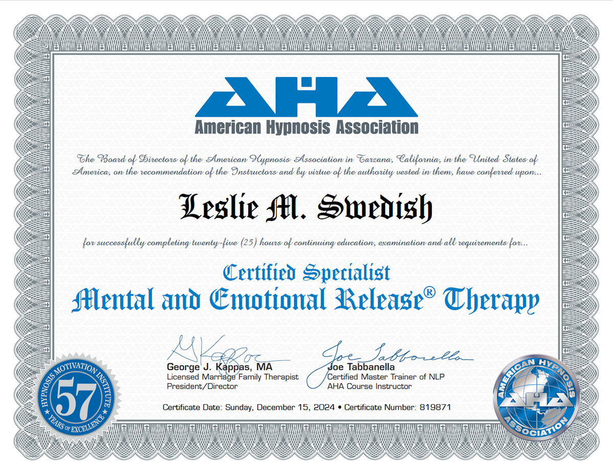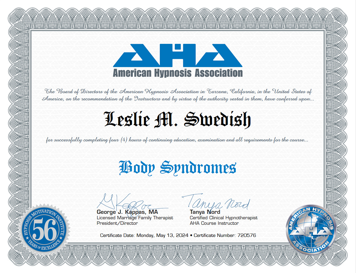 Leslie specializes in helping clients heal from toxic relationships, overcome insomnia, resolve childhood trauma, and build confidence and motivation. She also supports those ready to quit smoking or vaping—empowering them to replace destructive habits with inner calm and self-mastery. Drawing from her certifications in NLP, Parts Work (IFS), Reiki, Chakra Healing, and intuitive modalities like Tarot and Oracle cards, Leslie blends structure and intuition seamlessly. Her background working with both analytical and spiritually inclined individuals allows her to meet clients exactly where they are—whether they approach hypnotherapy through science, spirituality, or simple curiosity.