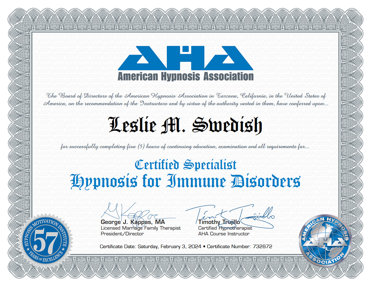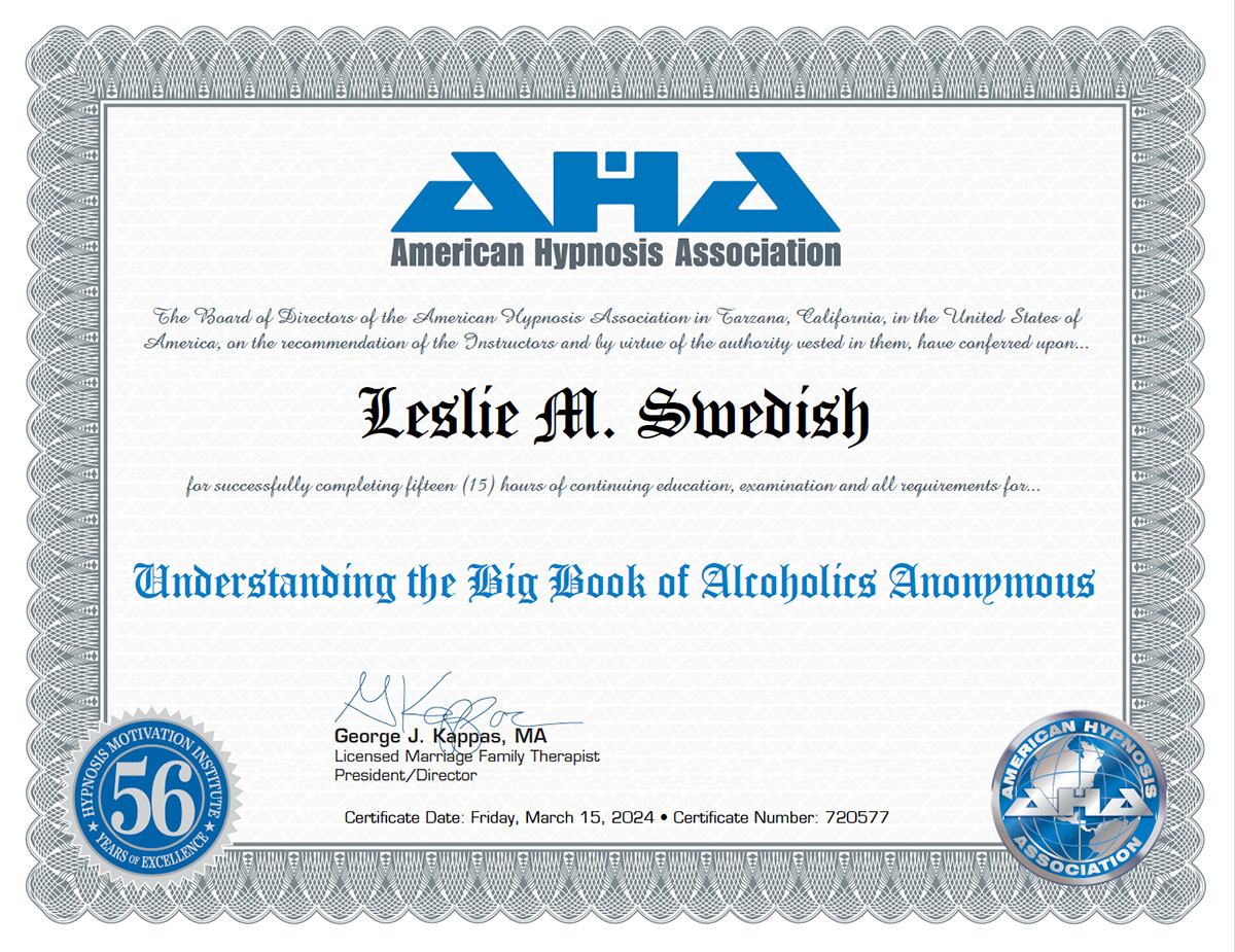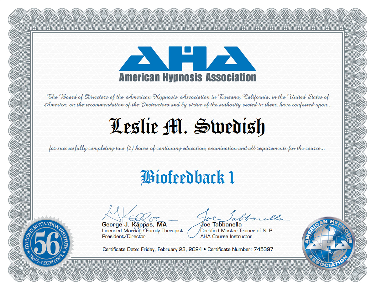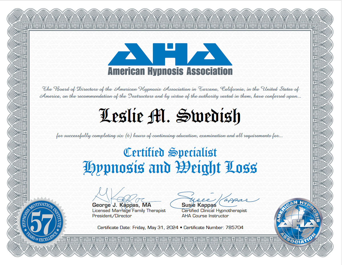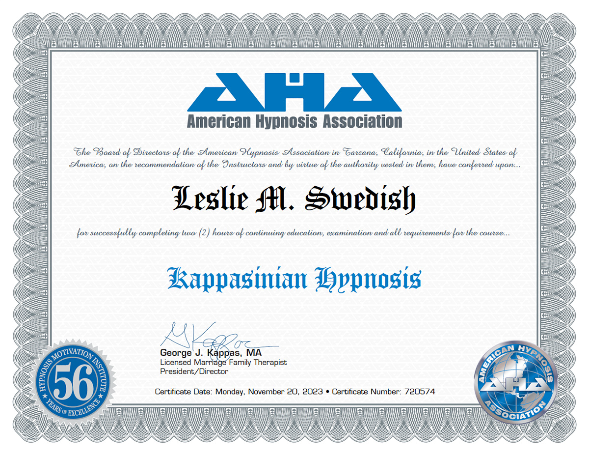 Leslie specializes in helping clients heal from toxic relationships, overcome insomnia, resolve childhood trauma, and build confidence and motivation. She also supports those ready to quit smoking or vaping—empowering them to replace destructive habits with inner calm and self-mastery. Drawing from her certifications in NLP, Parts Work (IFS), Reiki, Chakra Healing, and intuitive modalities like Tarot and Oracle cards, Leslie blends structure and intuition seamlessly. Her background working with both analytical and spiritually inclined individuals allows her to meet clients exactly where they are—whether they approach hypnotherapy through science, spirituality, or simple curiosity.