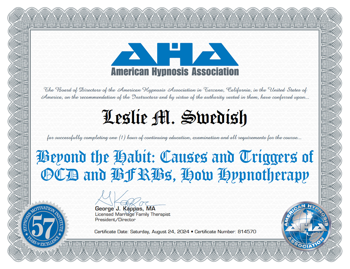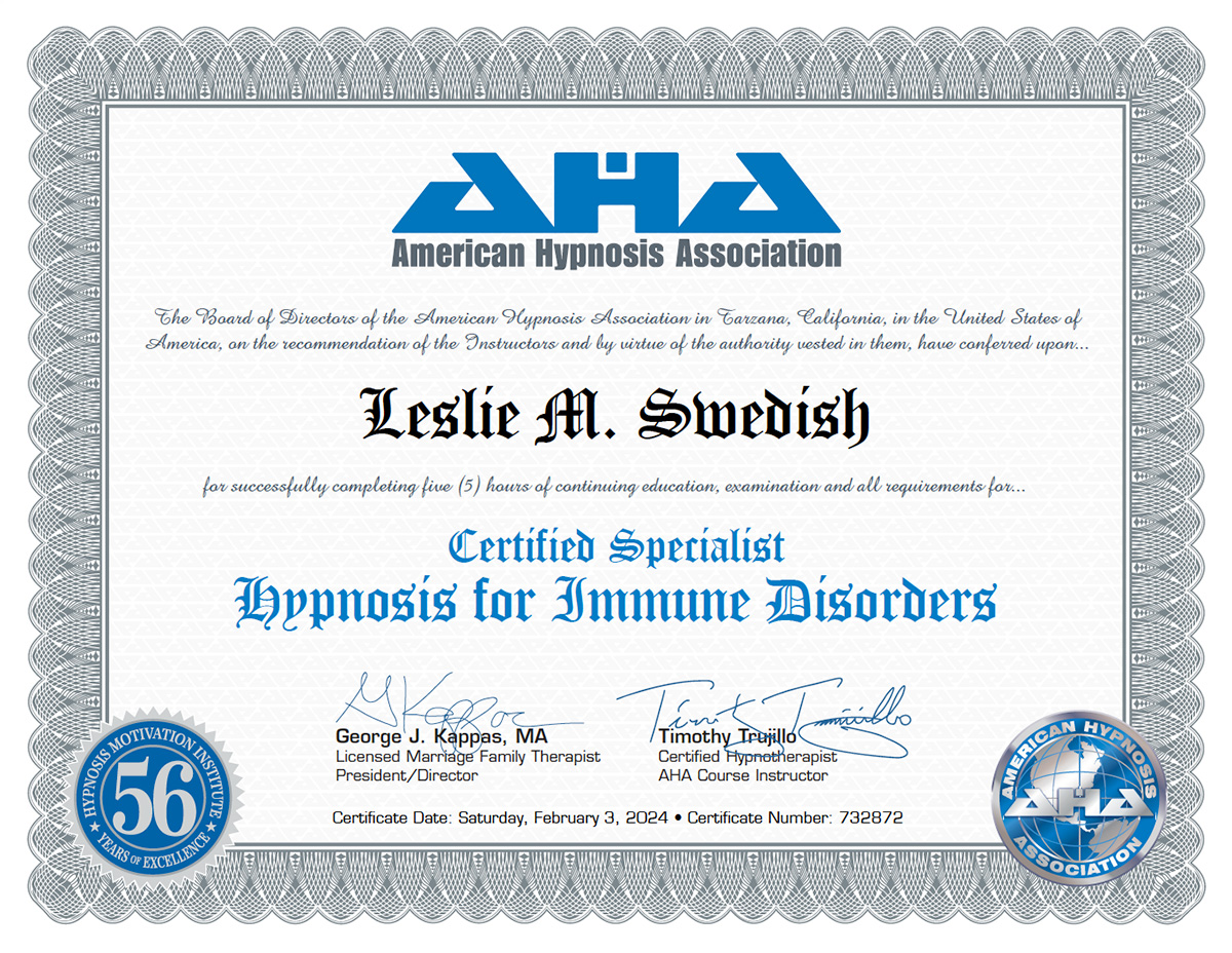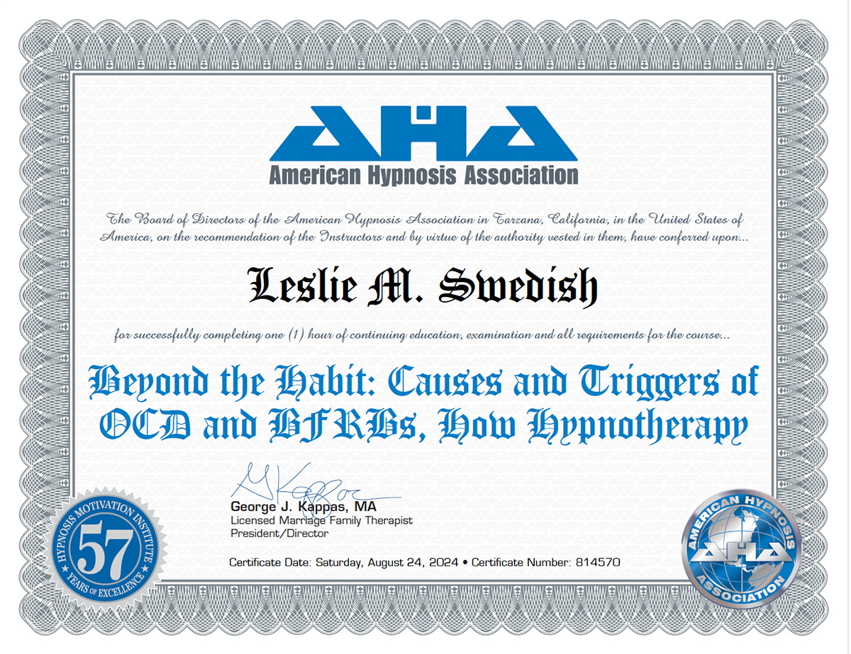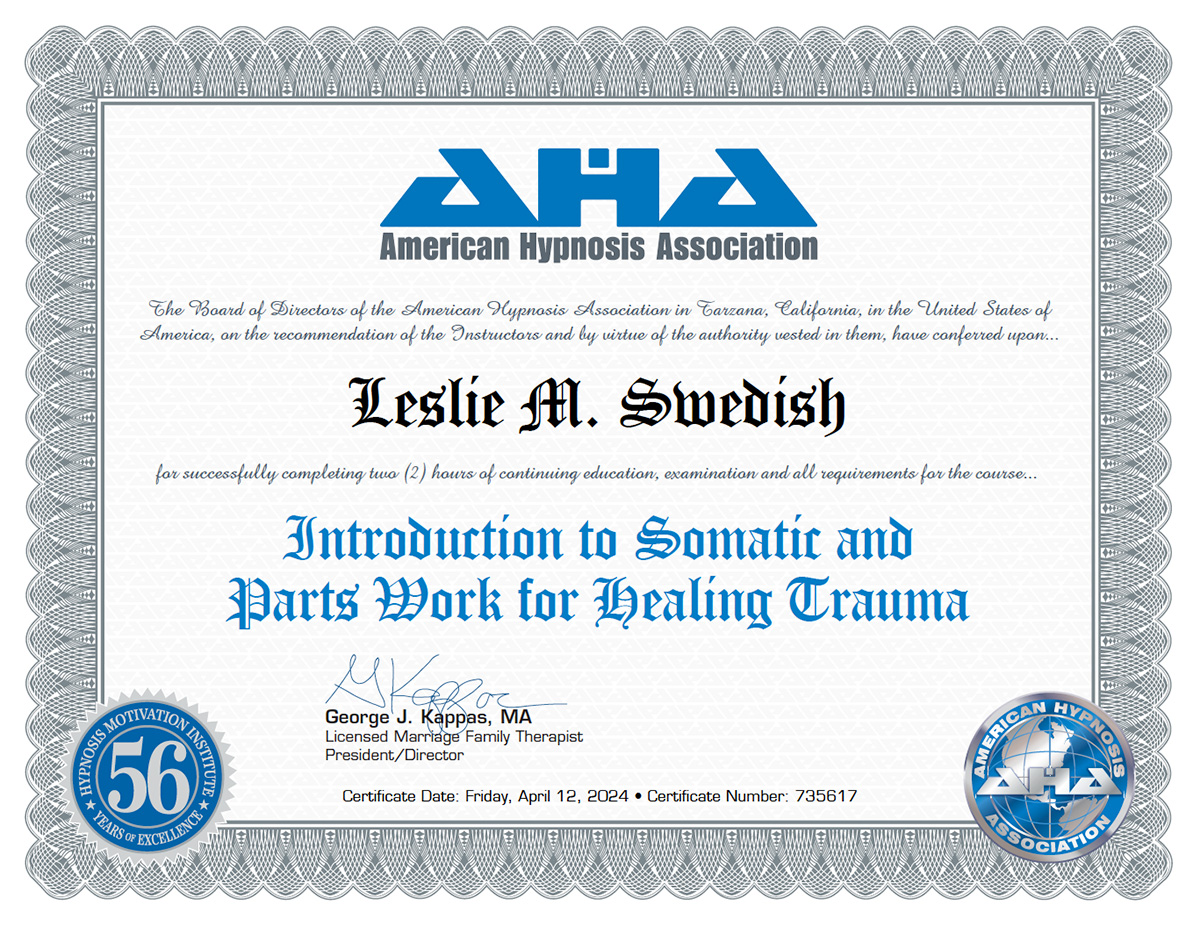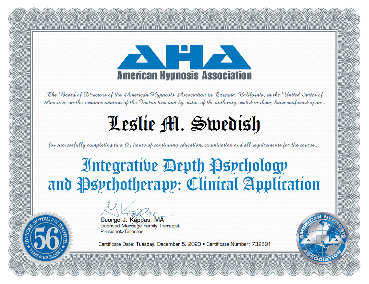 Leslie specializes in helping clients heal from toxic relationships, overcome insomnia, resolve childhood trauma, and build confidence and motivation. She also supports those ready to quit smoking or vaping—empowering them to replace destructive habits with inner calm and self-mastery. Drawing from her certifications in NLP, Parts Work (IFS), Reiki, Chakra Healing, and intuitive modalities like Tarot and Oracle cards, Leslie blends structure and intuition seamlessly. Her background working with both analytical and spiritually inclined individuals allows her to meet clients exactly where they are—whether they approach hypnotherapy through science, spirituality, or simple curiosity.
