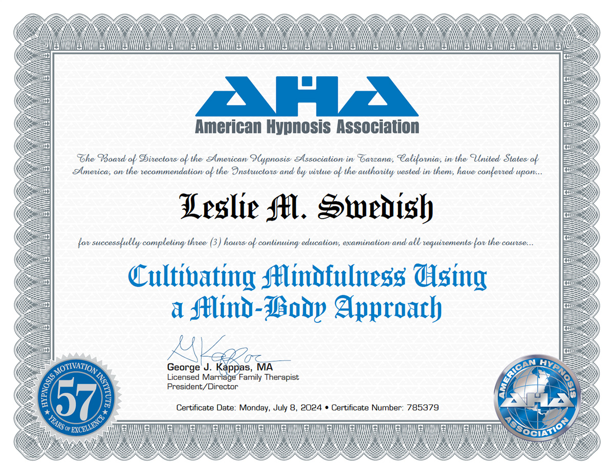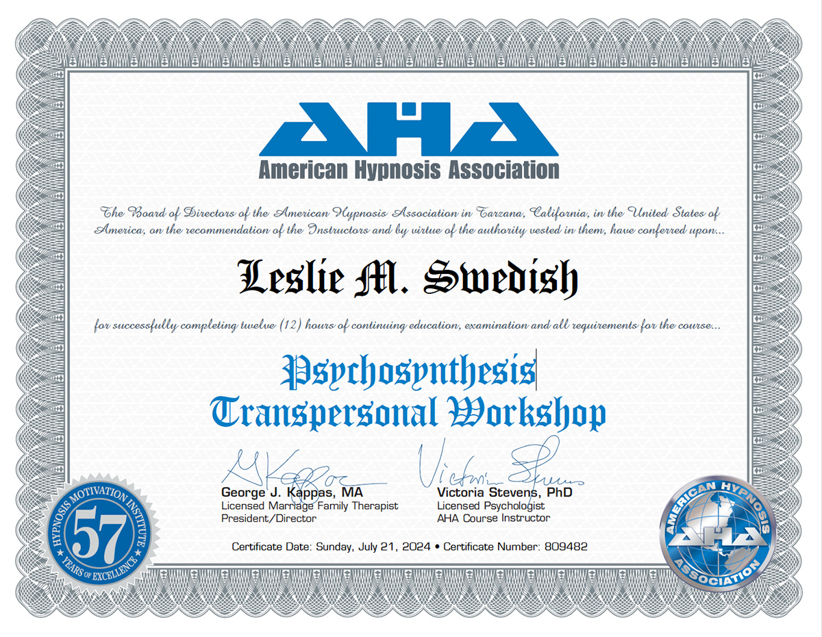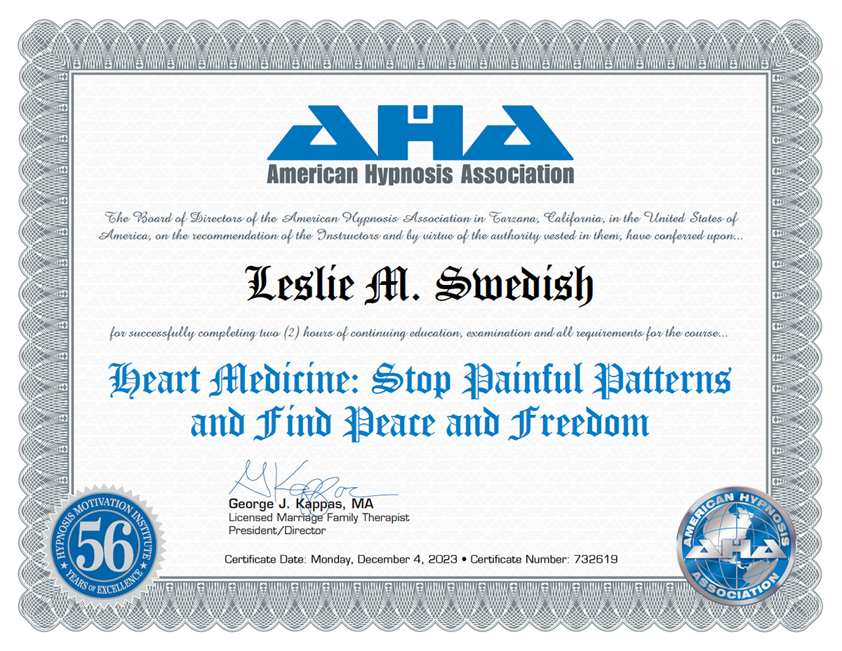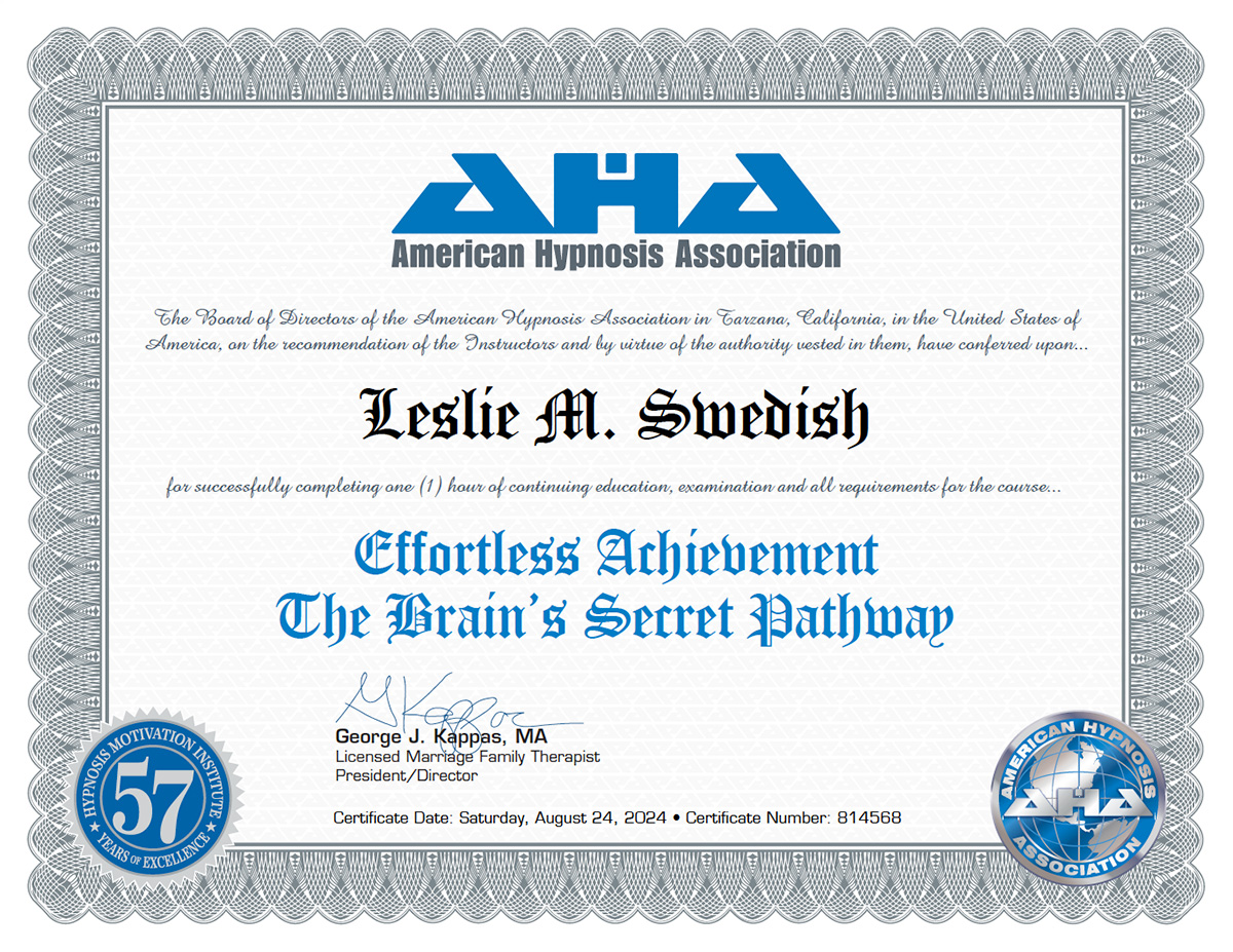 At the heart of Leslie’s work is a profound respect for the human mind’s ability to heal and rewire itself. She believes that every client arrives at exactly the right moment in their life—ready, in some way, to cross a threshold of growth. Her approach is both scientific and soulful: she integrates cognitive awareness with hypnotic states to help clients uncover their “developmental edge”—that liminal point where change begins to stir. Leslie guides her clients toward this edge gently but purposefully, allowing them to explore what’s holding them back, and helping them decide when they’re ready to step into the new.