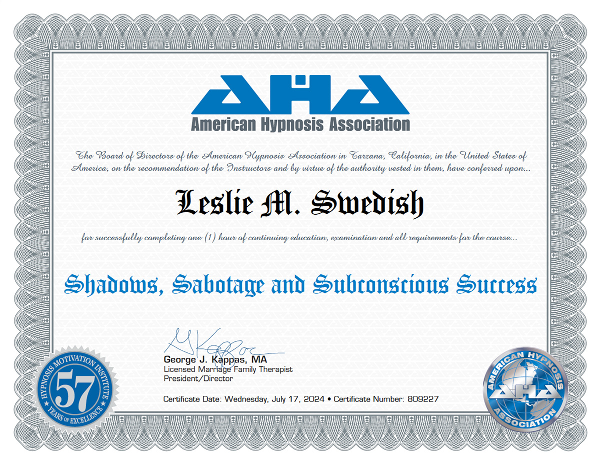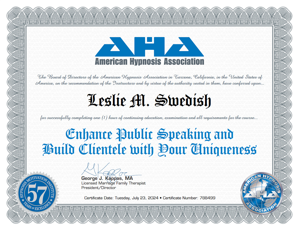 Among Leslie’s most memorable client journeys was one that began with simple nail-biting and unfolded into profound inner healing. What started as a behavioral issue became a doorway into self-discovery, inner child work, and parts integration. By the fifteenth session, the client had transformed his internal dialogue, improved his relationships, and experienced greater motivation and calm—proof, Leslie says, that “what people come in for is rarely what their soul is truly asking to heal.” Her approach proves that when hypnosis meets empathy, real transformation follows.